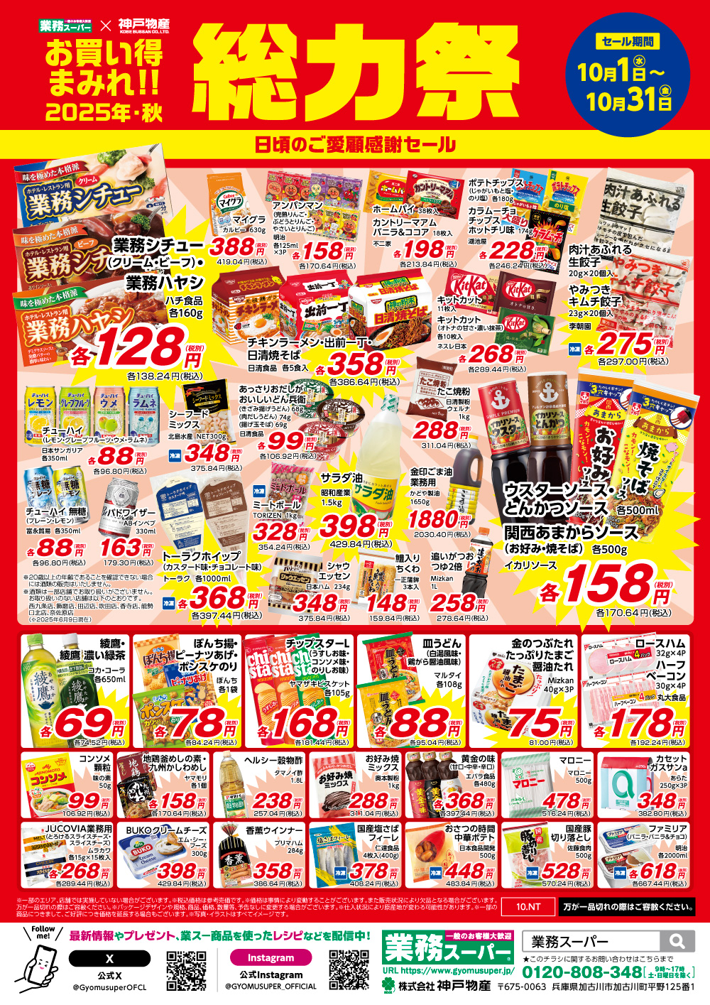 業務スーパー×神戸物産 お買い得まみれ!!2025年・秋「総力祭」第2弾のチラシがこちら(兵庫県版)
