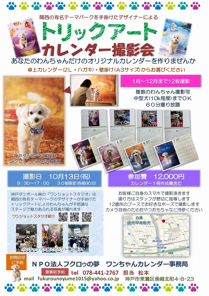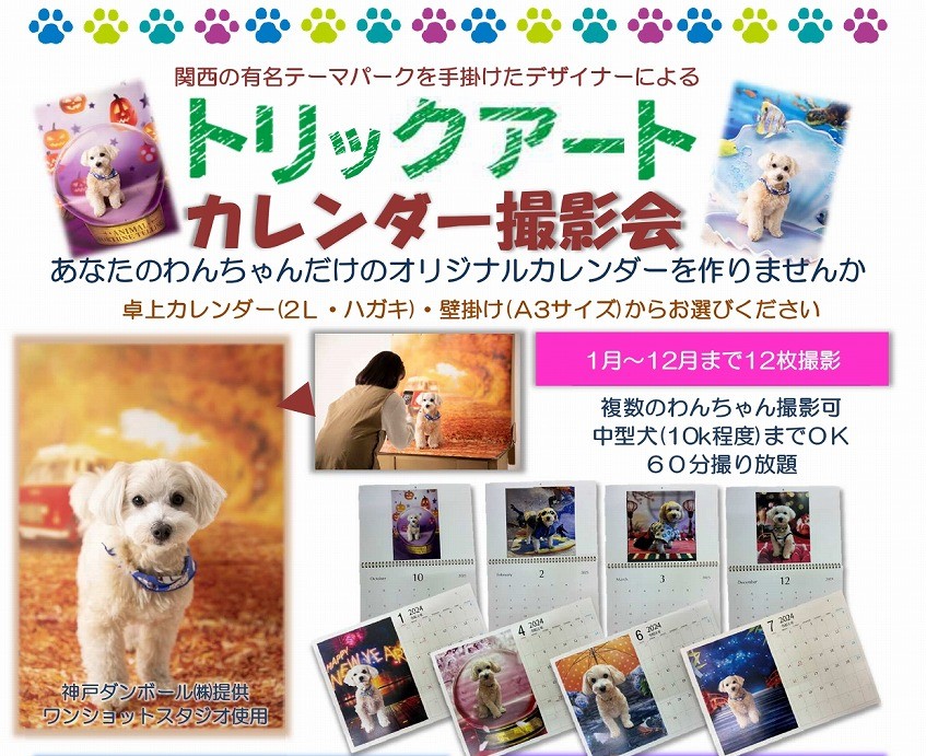 東灘・魚崎北町で「トリックアートカレンダー撮影会」が10月13日(祝)に開催予定!至高のトリックアートで愛犬を撮ってカレンダーを作ろう♪ #イベント#東灘区 #トリックアートカレンダー撮影会