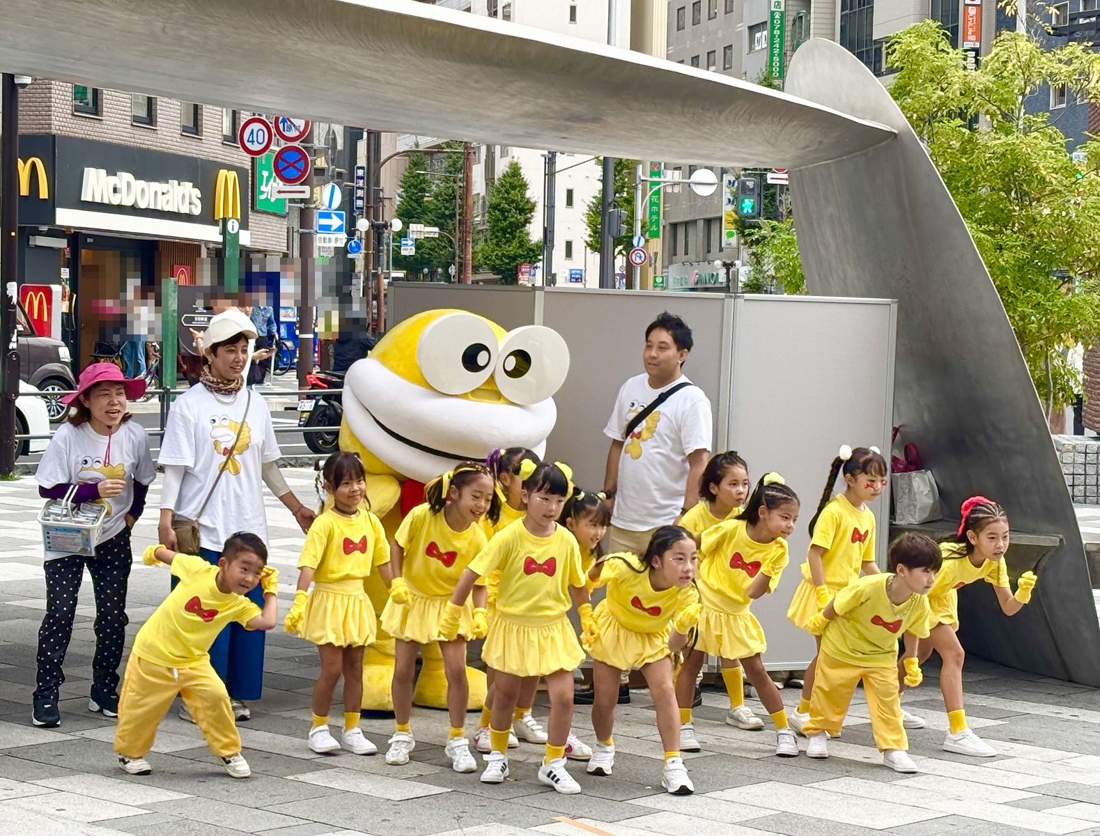 「さかなっつくん」をイメージした全身黄色の衣装に身を包み、元気いっぱいにダンスを披露♪