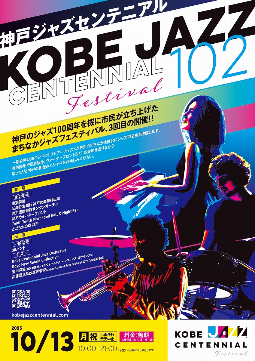 神戸のまちなかを舞台にしたジャズフェスティバル「Kobe Jazz Centennial」(神戸ジャズセンテニアル)が2025年10月13日(祝)に開催予定です。