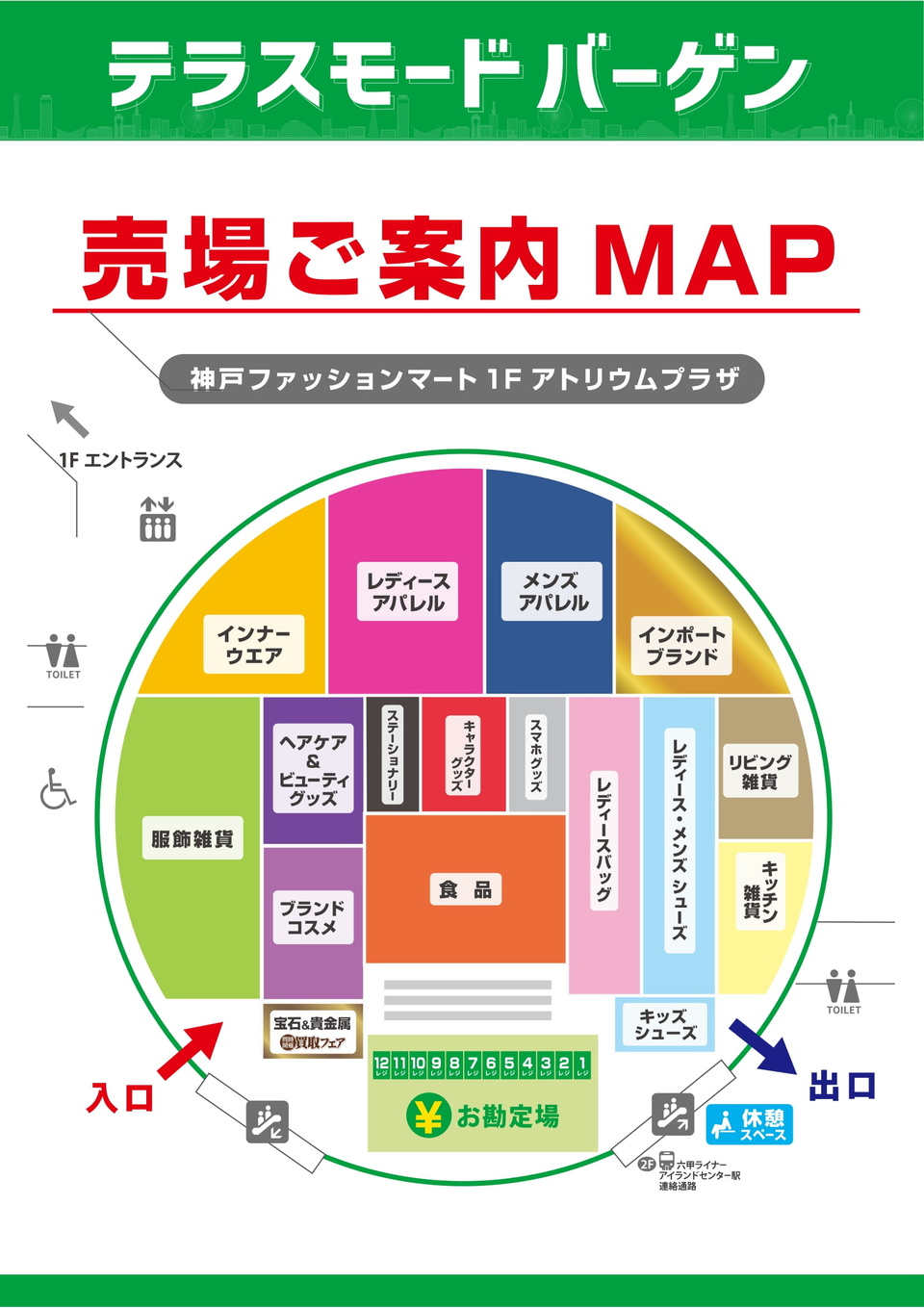 神戸ファッションマート1階・アトリウムプラザで開催される「テラスモードバーゲン」。こちらのイベントでは会員カードがなくてもOK!どなたでも入場することができます。