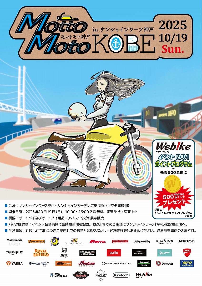 サンシャインワーフ神戸で「Motto Moto KOBE 2025」が10月19日(日)に開催予定ということで、ご案内をお寄せ頂きました。
