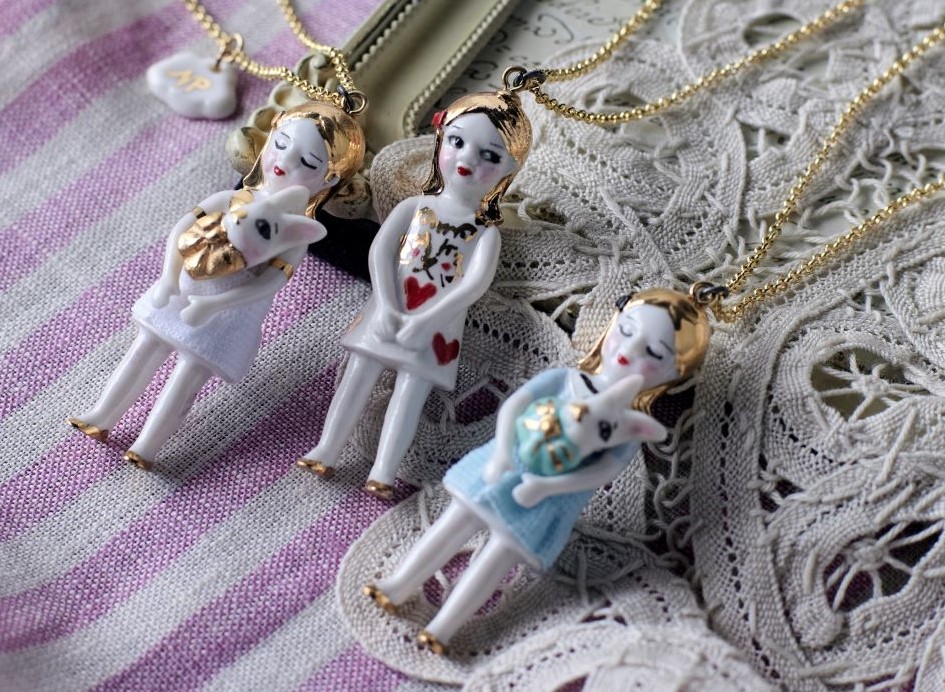 パリのアトリエで仕上げた、フィギュリンのペンダントにはそれぞれに名前がつけられています。