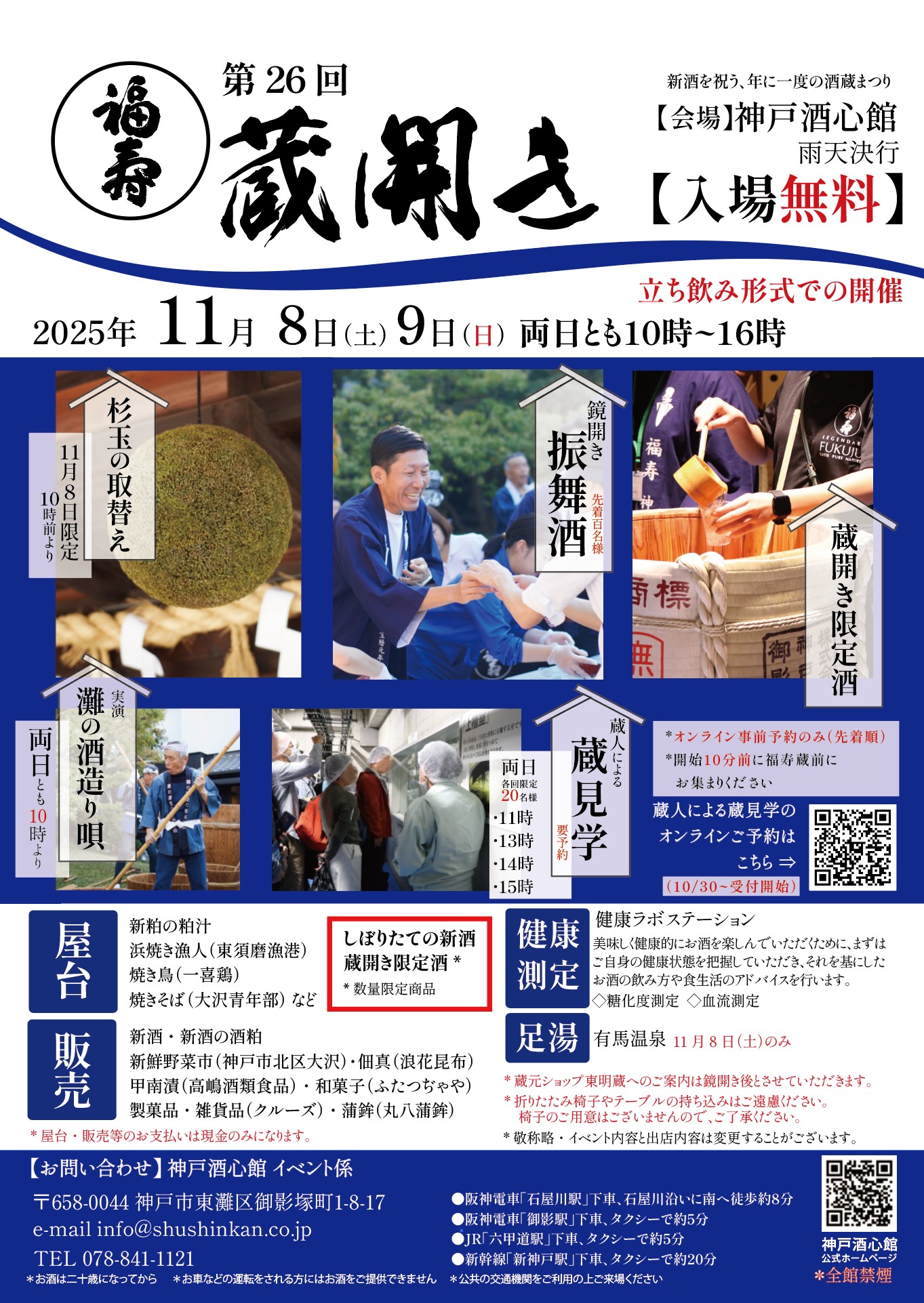 画像と情報の引用参照:神戸酒心館 WEBサイト「第26回 福寿 蔵開き 2025(2025.11.8~11.9)」