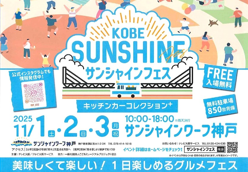 サンシャインワーフ神戸で「KOBEサンシャインフェス~キッチンカーコレクションplus~」が11月1日(土)~3日(月・祝)に開催予定です。