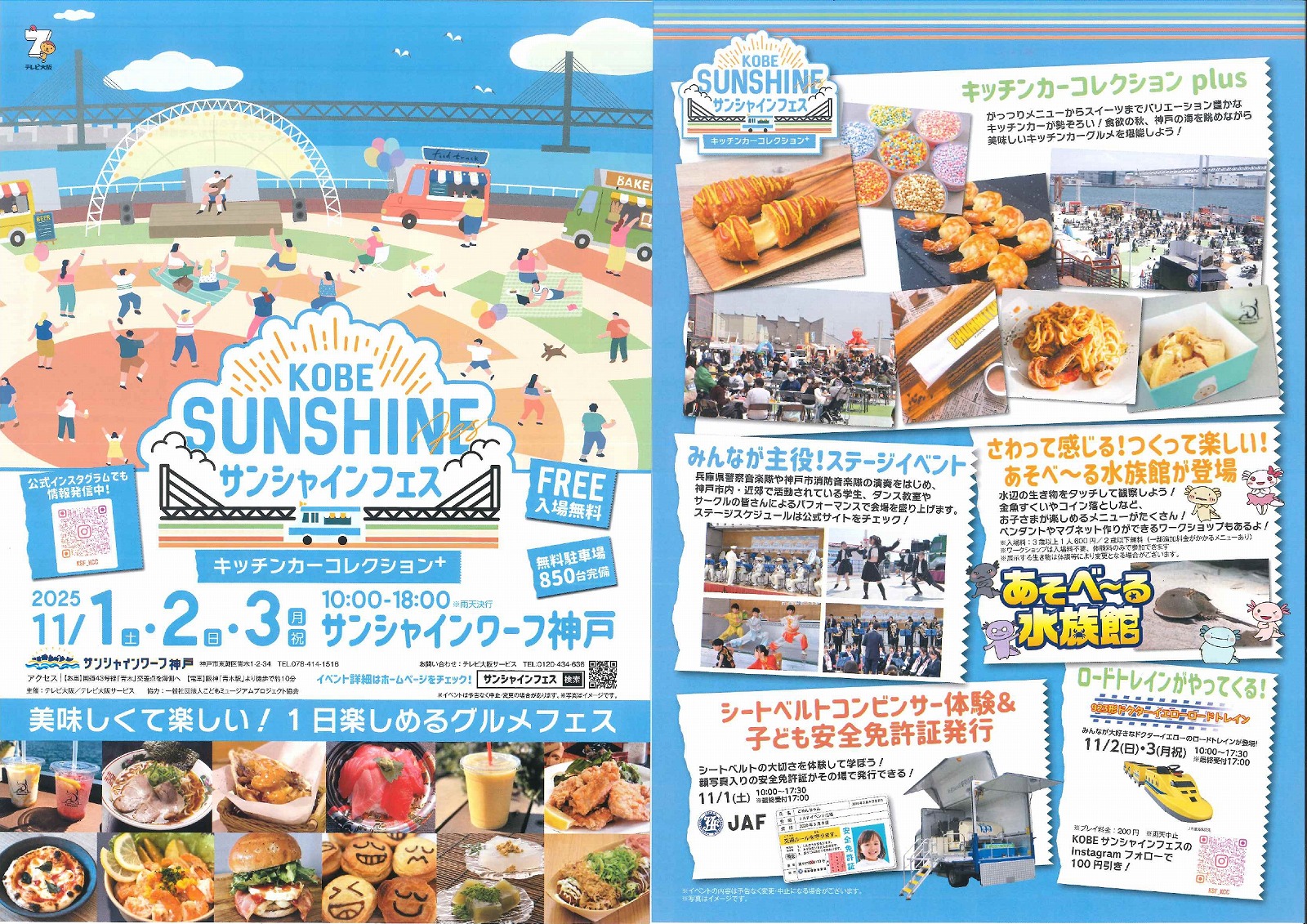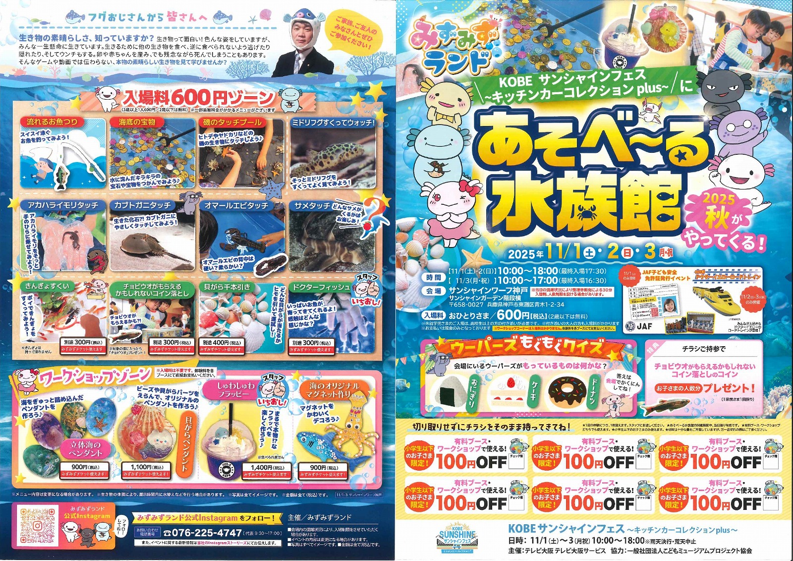 サンシャインワーフ神戸で「KOBEサンシャインフェス~キッチンカーコレクションplus~」が11月1日(土)~3日(月・祝)に開催!さわって体験できる「あそべ~る水族館」もあるよ♪ #東灘区 #イベント #サンシャインワーフ神戸