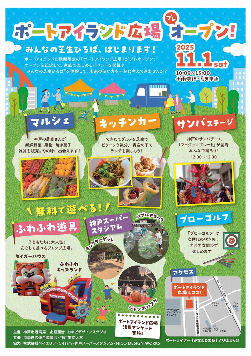 神戸ポートアイランド広場で「プレオープンイベント」が11月1日(土)に開催予定です。