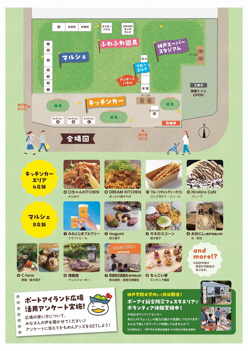 すぐ横の神戸学院大学では、大学祭とポーアイ総合フェスタも開催されているので、3つ合わせて1日中楽しめます。11月1日はぜひ、ポートアイランド広場のプレオープンイベントで楽しんでね♪