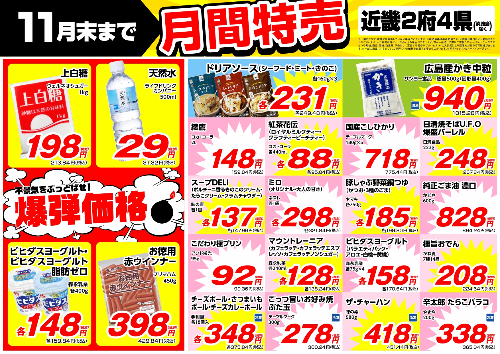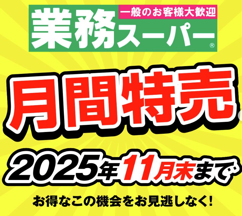 【業務スーパー】2025年11月の月間特売はヨーグルトやドリアソースなどがお買得!近畿エリア(大阪・京都・兵庫(※淡路島除く)・滋賀・和歌山・奈良)の特売チラシがこちら。