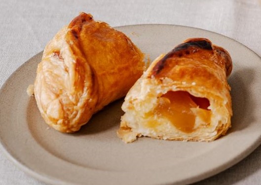 北海道産小麦使用のパン生地で、角切りりんごを合わせた北海道産スイートポテトを包み込み、上からカスタードクリームを絞って焼き上げました。スイートポテトの甘み、りんごの酸味、トッピングしたレモンの爽やかなハーモニーが抜群。