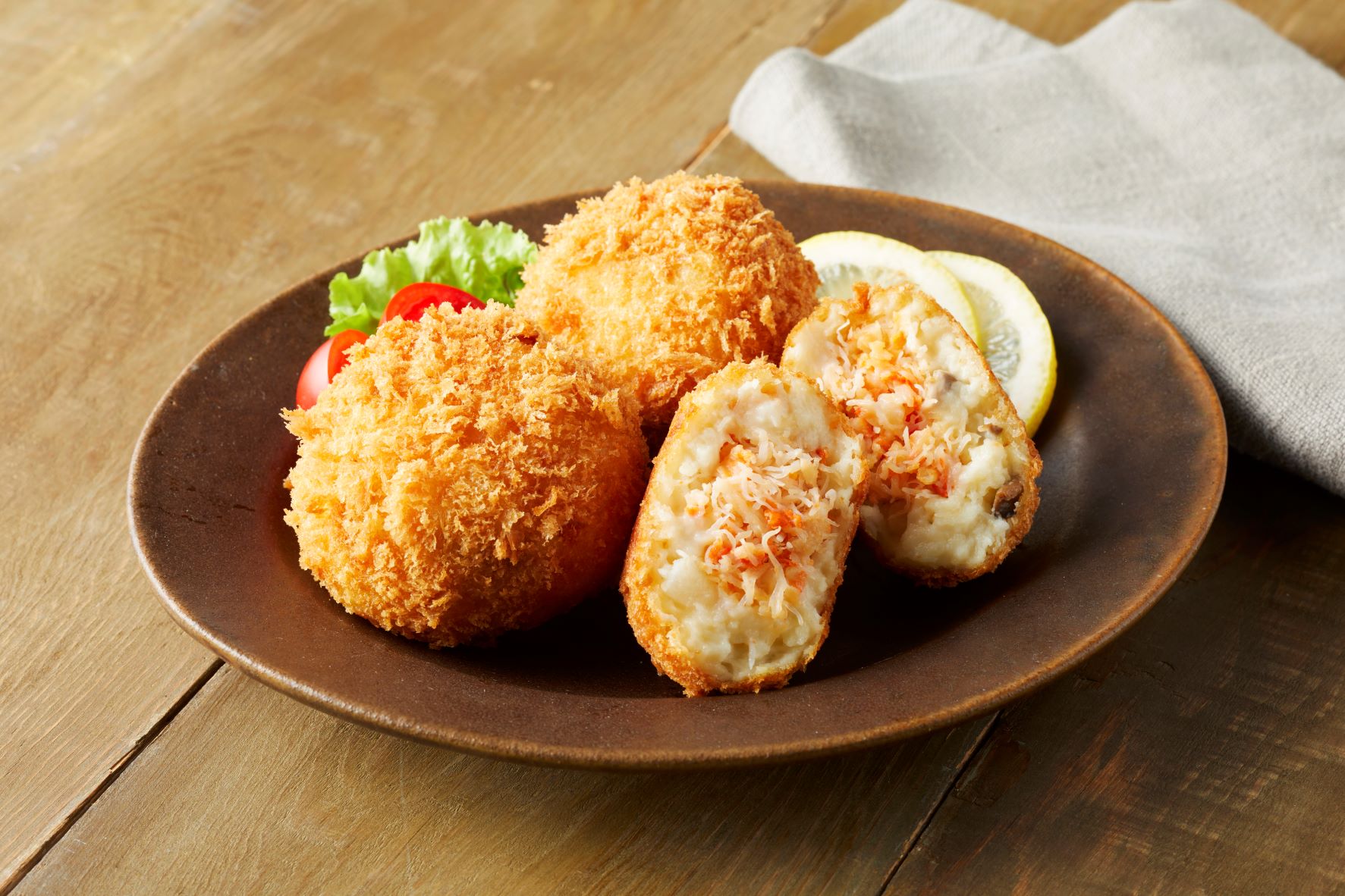 甘みのあるじゃがいも「北海こがね」とタラバガニをあわせた贅沢なクリームコロッケはここだけの味。