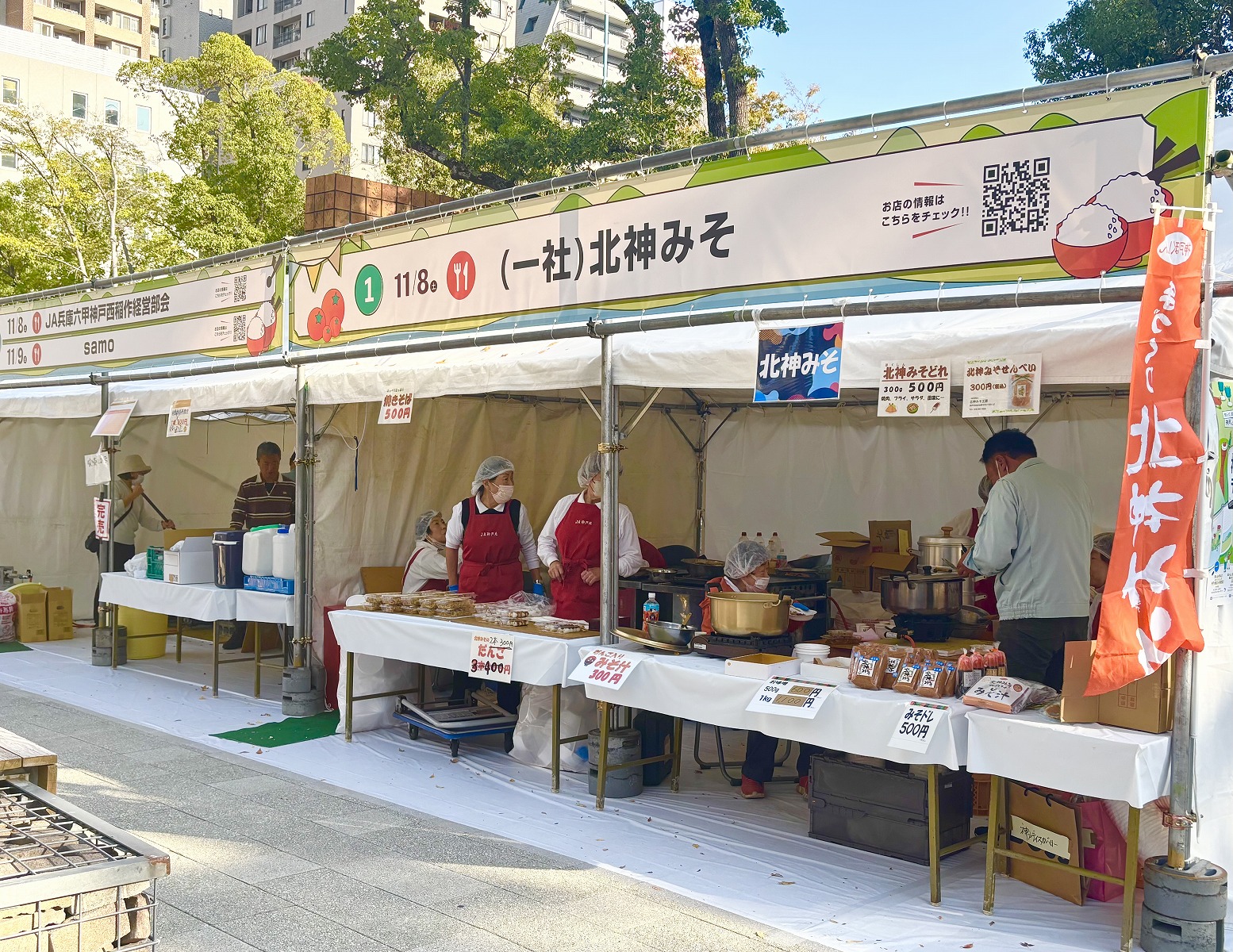 おみそのブースがあると聞き、「北神みそ」さんへ。味噌の販売の他、「みそ汁」や「だんご」の販売もされていらっしゃいます。