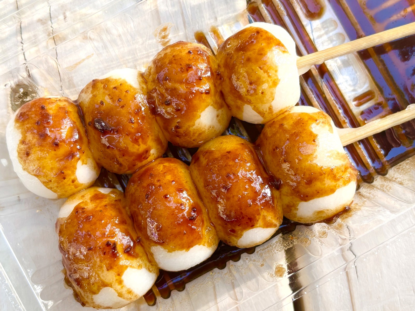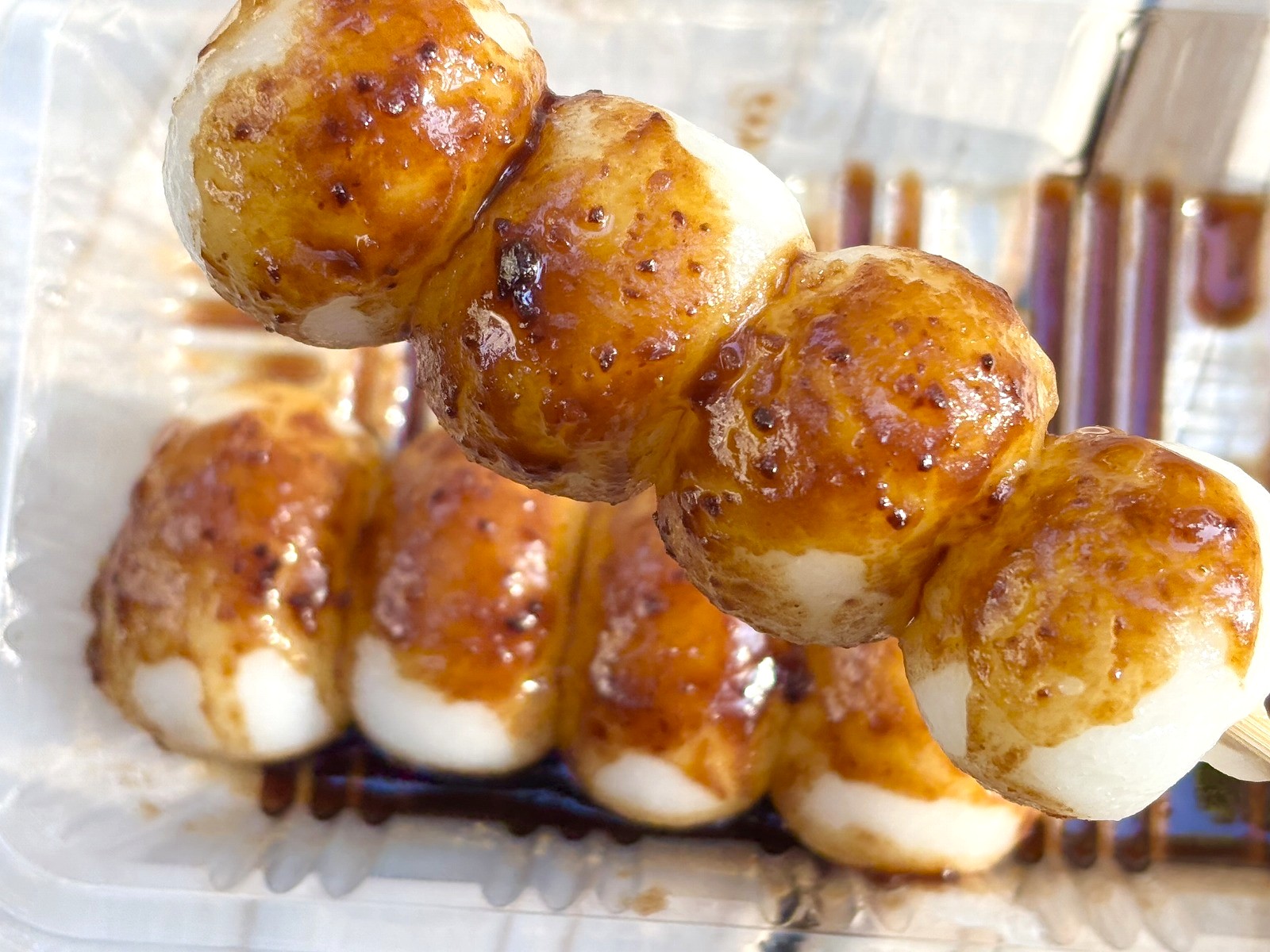 もちもちっとした串だんごに、みその甘じょっぱいタレがたっぷりとかかっており、