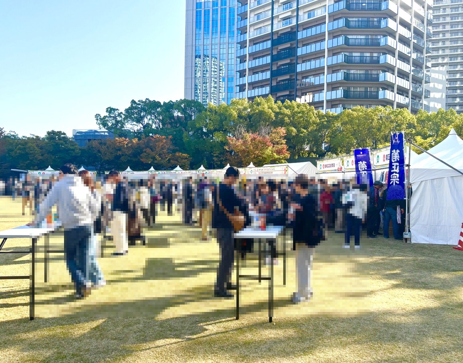 秋晴れのあたたかい日差しの下、多くの方が来場されています。