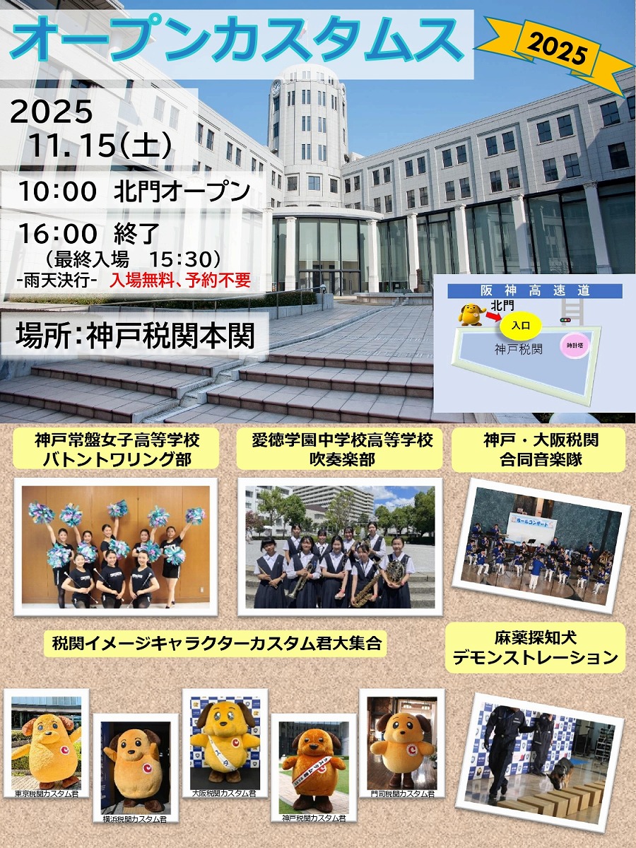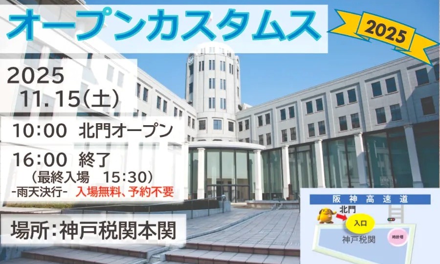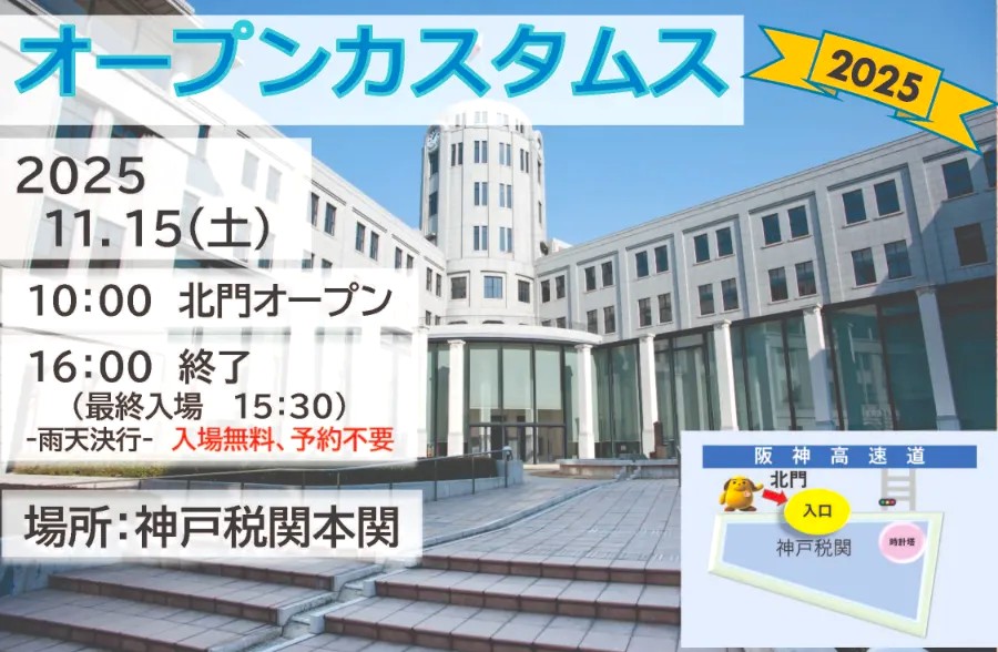 神戸税関で「オープンカスタムス2025」が11月15日(土) 10:00~16:00に開催予定です。