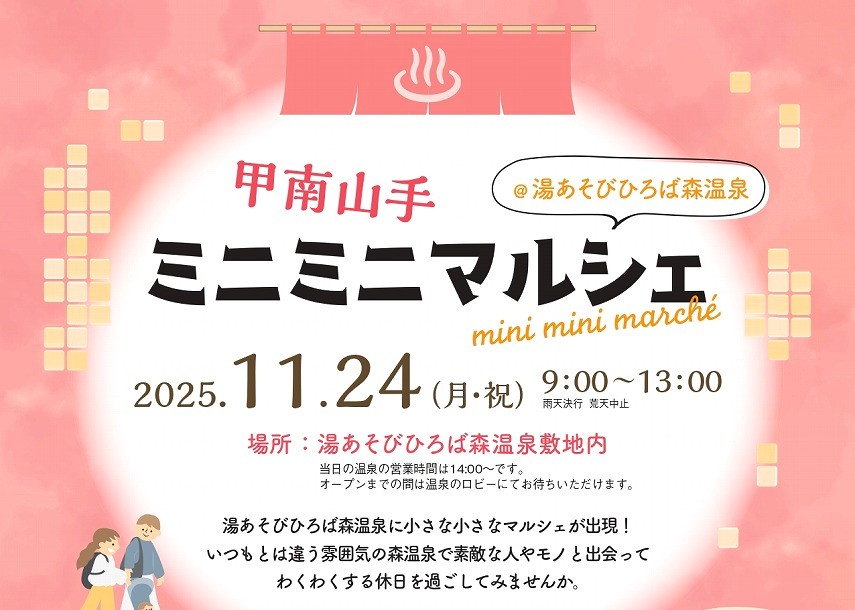 東灘の湯あそびひろば森温泉で「甲南山手ミニミニマルシェ」が11月24日(祝)に開催予定ということで、ご案内をお寄せ頂きました。