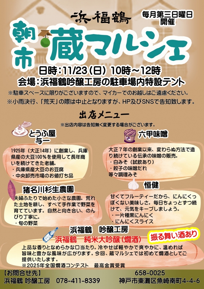 浜福鶴さんで2025年11月「蔵マルシェ(朝市)」の開催