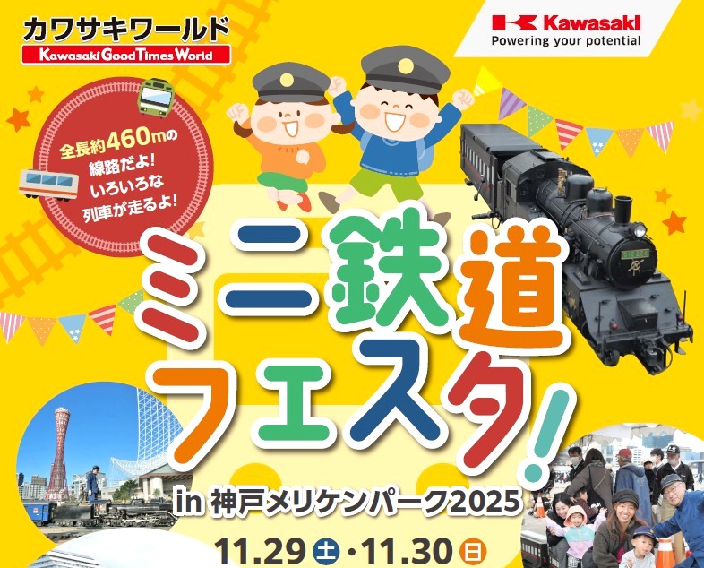 メリケンパークにあるカワサキワールドで11月29日(土)・30日(日)に、「ミニ鉄道フェスタ in 神戸メリケンパーク2025」が開催されます。
