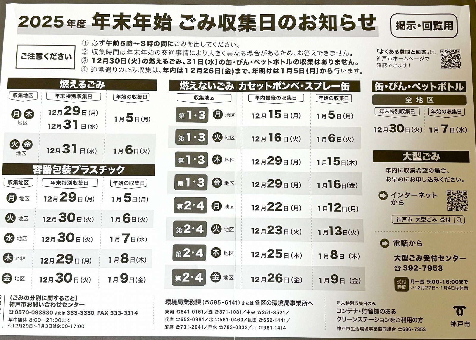 「神戸市・2025年度 年末年始のごみ収集日のお知らせ」についてのご案内がありました。