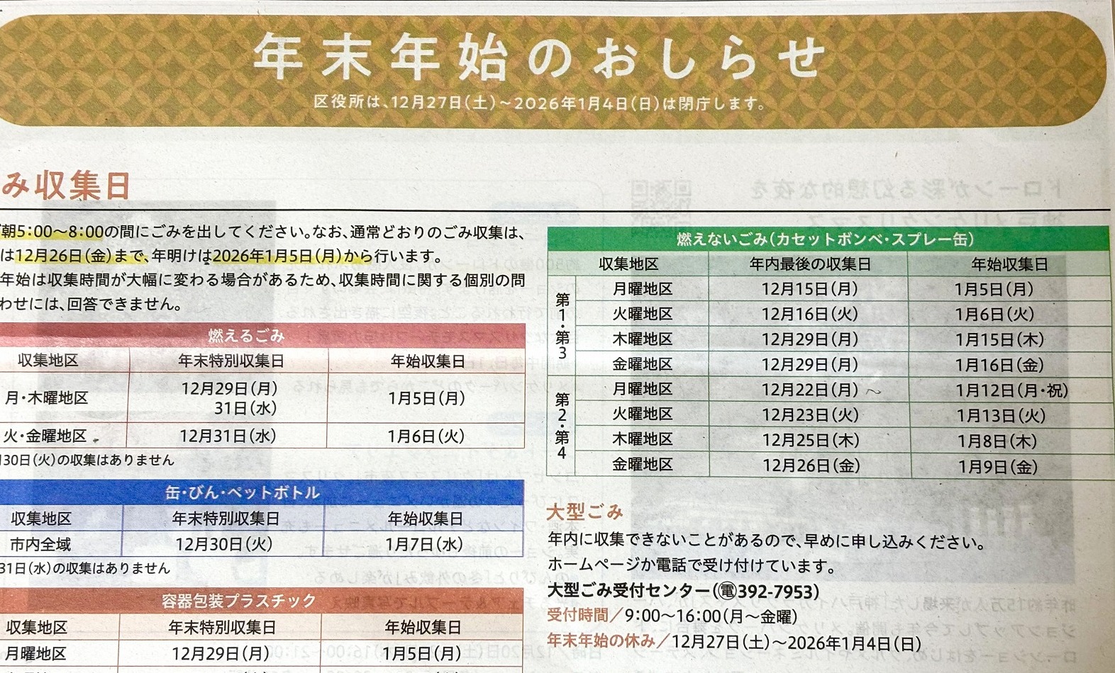 2025年度 年末年始 各種類ごとの収集日一覧がこちら