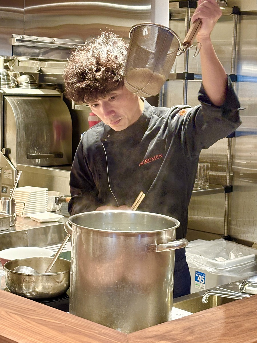 12月3日(水)は「GF RAMEN LAB」所長の大西益央シェフが来日・調理の様子を見せて頂きました