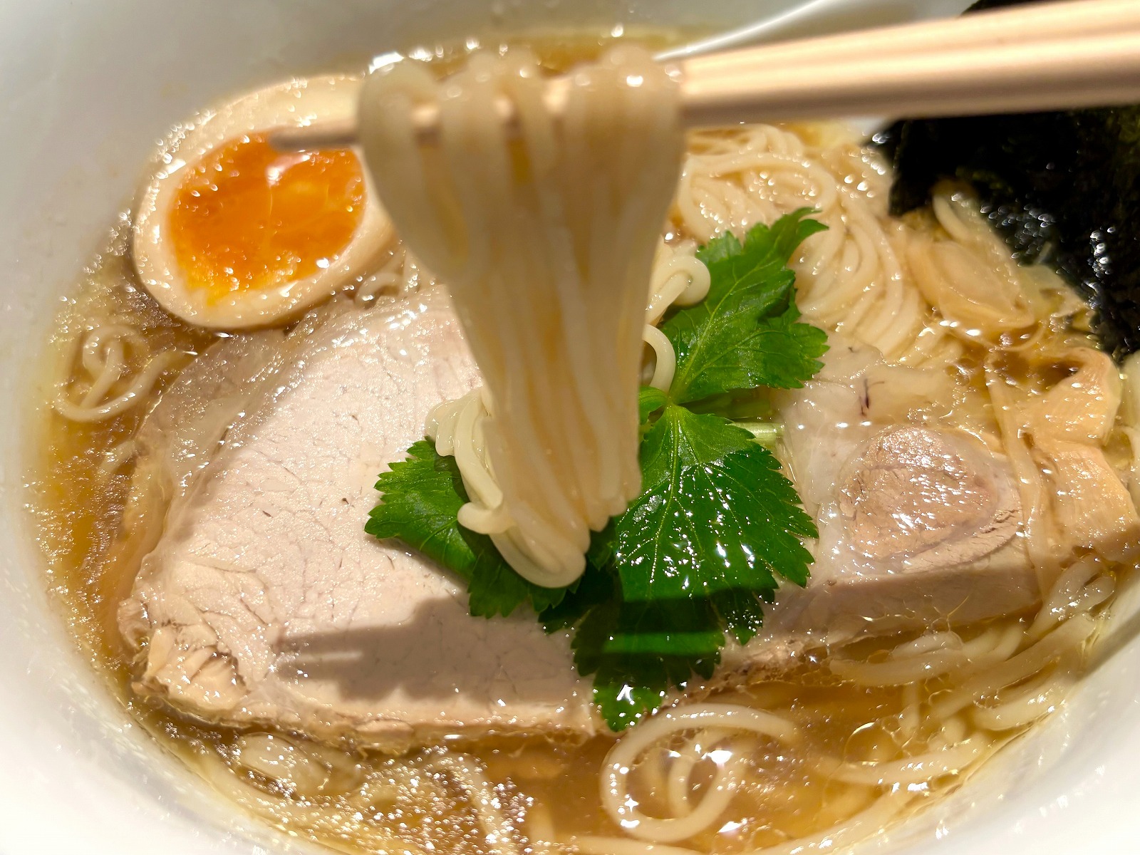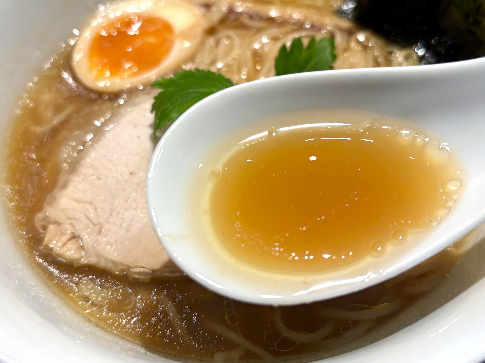 スープは鶏の旨味と醤油のなめらかな味わいが特徴です。こちらの醤油も大豆と米由来の醤油が使われており、調味料もグルテンフリーとのことで徹底されています。宮﨑のブランド地鶏をふんだんに使われており、鶏の旨味をしっかりと感じることができます。
