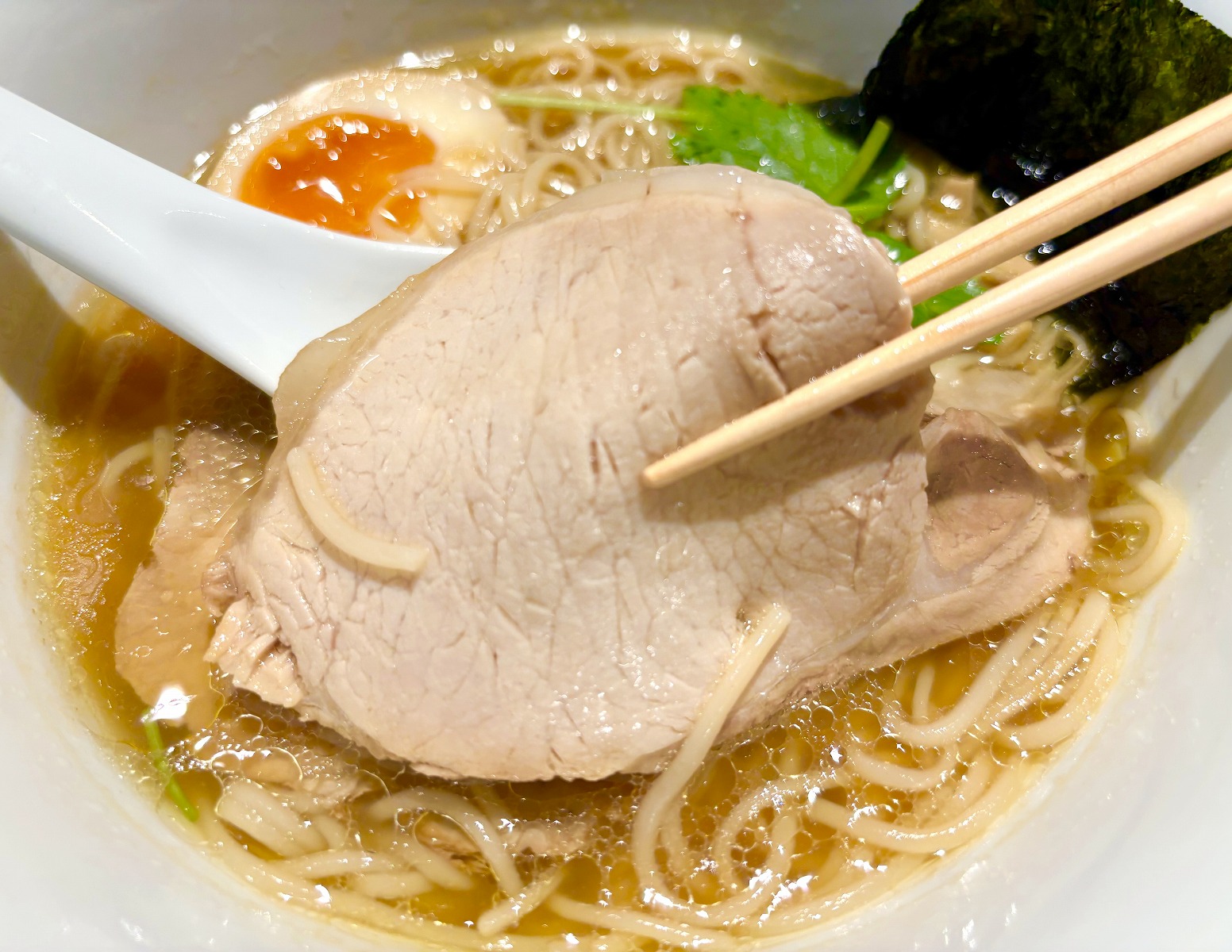 豚肩とロースの2種のチャーシュー、味付け半熟卵、メンマ、焼き海苔が盛り付けられており、これらすべて米醤油ベースで味付けされており、グルテンフリーが徹底されています。器の中での一体感が素晴らしく、ぜひ多くの皆様に食べて頂きたいと感じました。