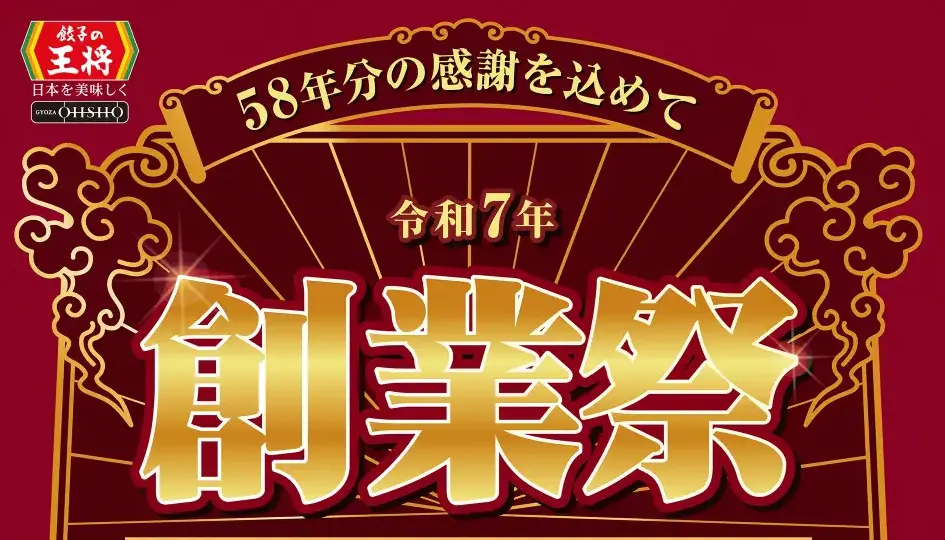 画像と情報の引用参照:餃子の王将 WEBサイト「12月24日・25日 令和7年 創業祭 開催のお知らせ」
