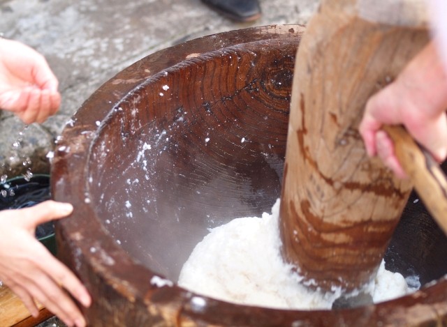臼と杵でついた出来立ての餅は格別の美味しさです。