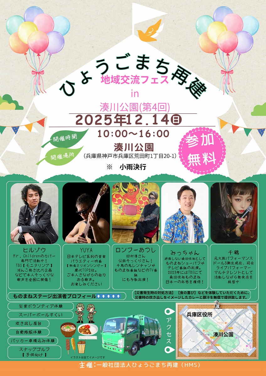 画像と情報の引用参照:一般社団法人ひょうごまち再建 WEBサイト「2025.11.12第4回ひょうごまち再建地域交流フェスin湊川公園の開催決定」