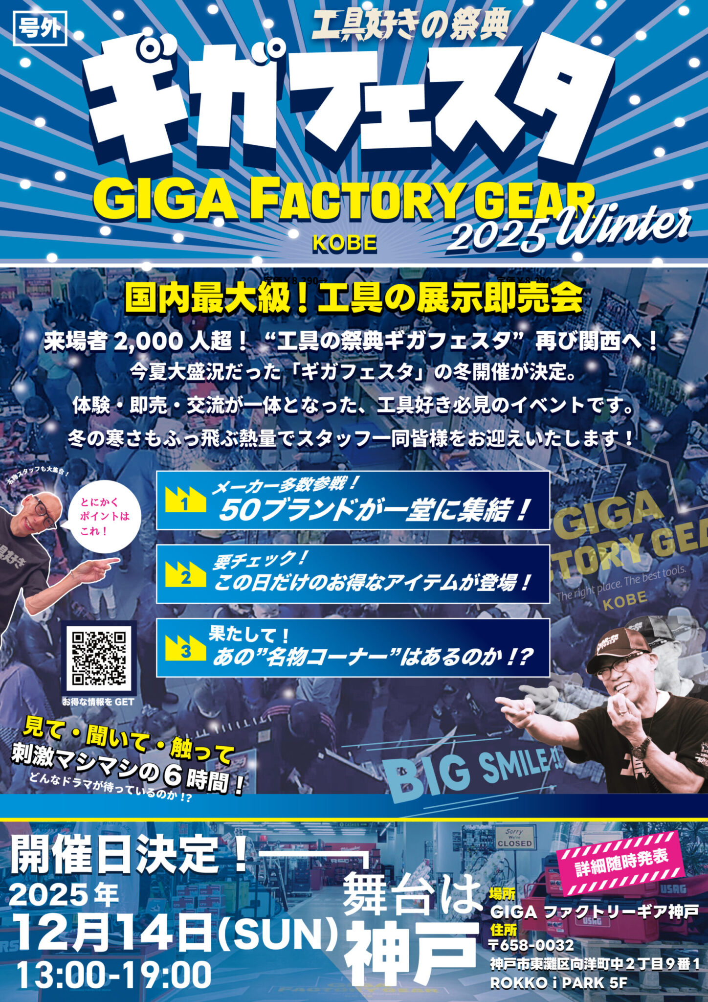 神戸で国内最大級の工具即売会「ギガフェスタ」が12月14日開催!