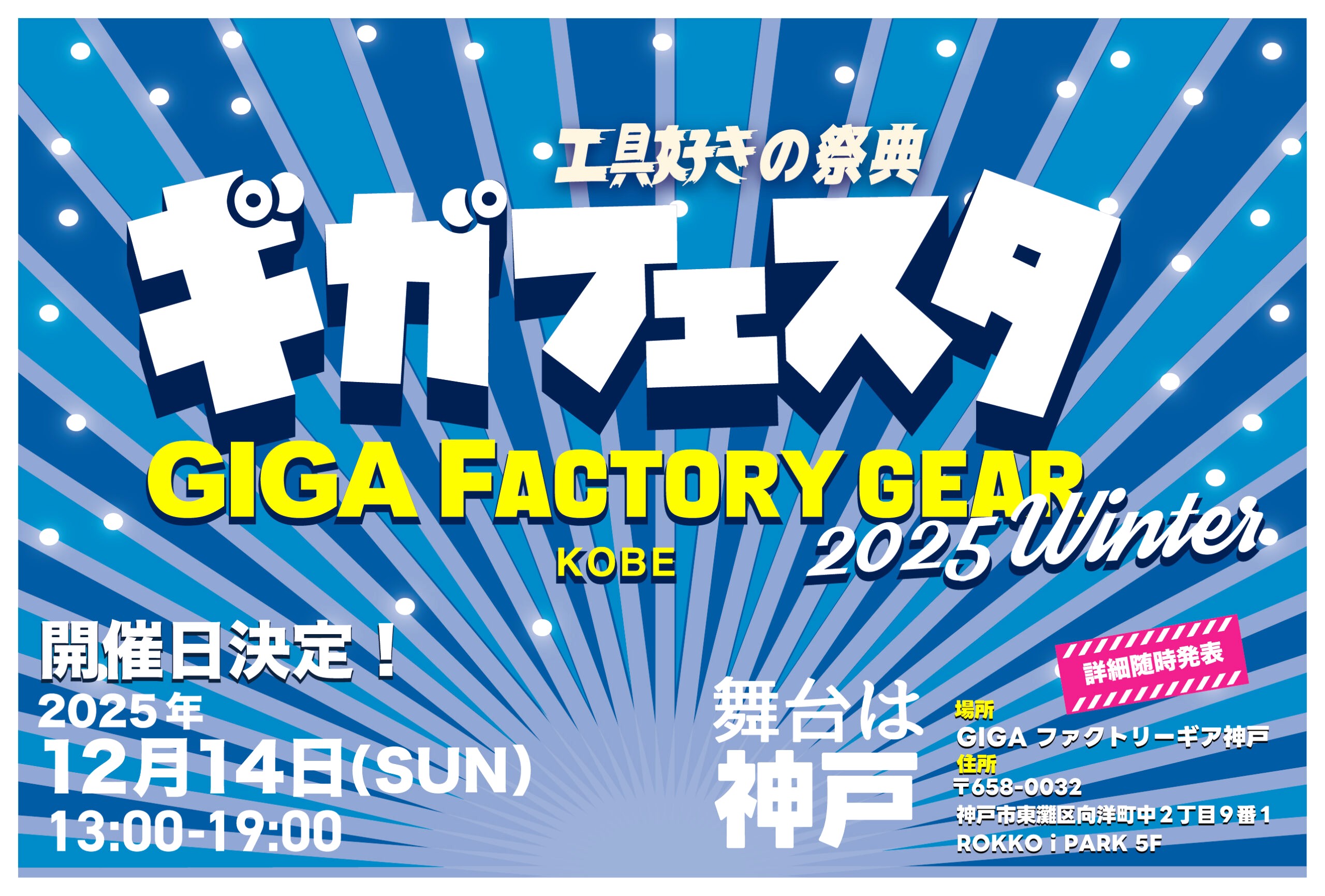 ROKKO i PARKにある「GIGAファクトリーギア神戸」さんで、工具好きの祭典「ギガフェスタ」が2025年12月14日(日)に開催されます。