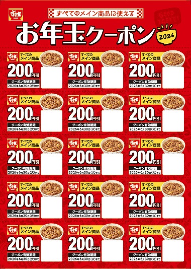 すき家の福袋「SMILE BOX 2026」(税込3,500円)が12月26日(金)10:00~店舗・数量限定で販売!すき家オリジナルデザイングッズと3,500円分のクーポン券付きで大変お得だよ! #すき家 #福袋