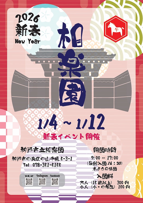 神戸の相楽園で「新春イベント」が2026年1月4日(日)~12日(月・祝)まで開催されます。