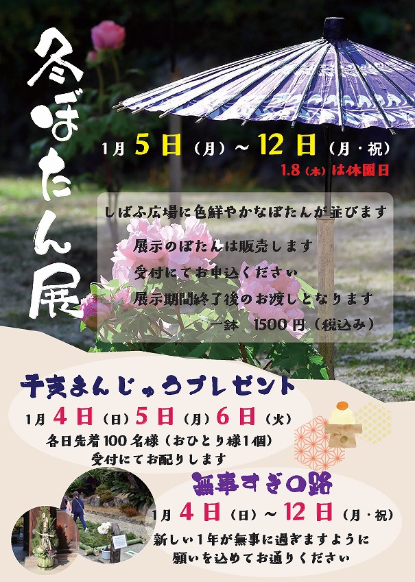 画像と情報の引用参照::神戸市立相楽園WEBサイト「冬ぼたん展2026 冬のイベント1月」