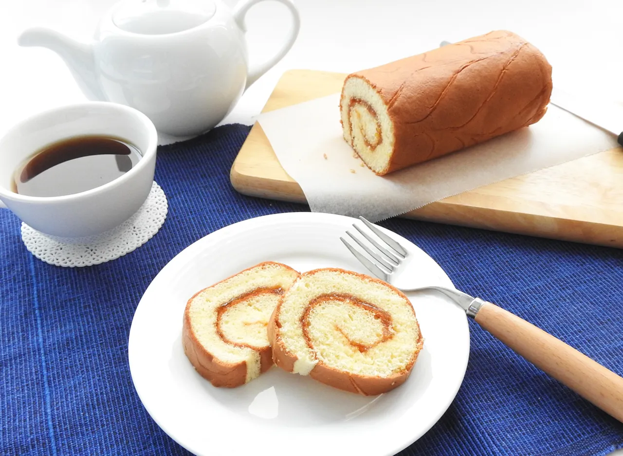 卵たっぷりのロール生地に、ジューシーな夏みかんのマーマレードをたっぷり入れ、職人が手巻きしました。