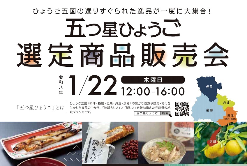 神戸サンボーホールで「五つ星ひょうご選定商品 販売会」が2026年1月22日(木)12:00~16:00に開催予定ということで、ご案内をお寄せ頂きました。
