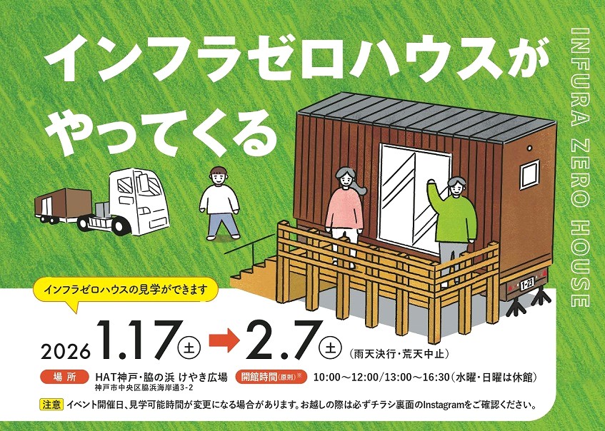 画像と情報の引用参照:UR都市機構 WEBサイト「HAT神戸・脇の浜に「インフラゼロハウス」設置 1月17日(土)オープニングイベント開催 」