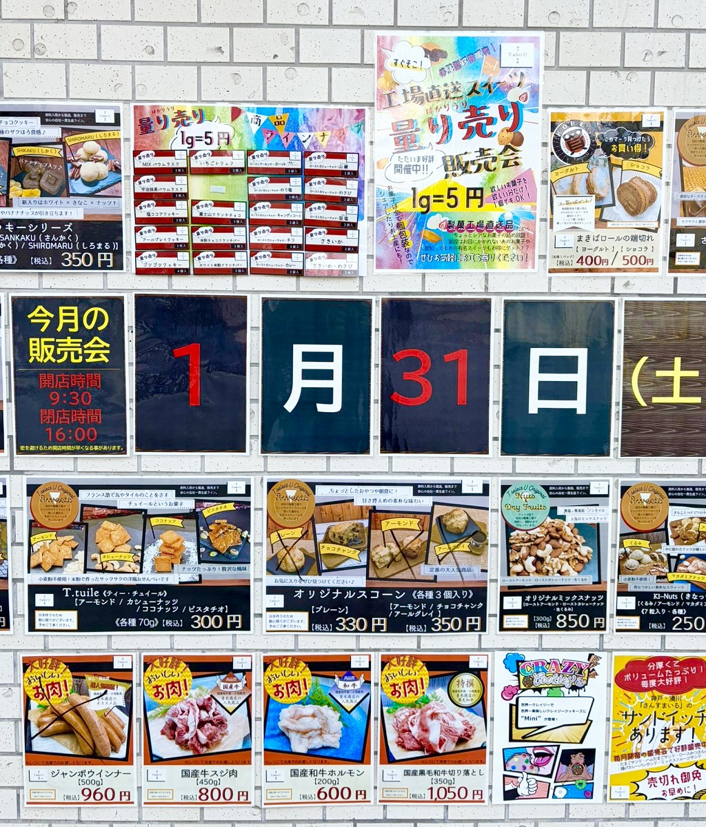 東灘・魚崎の「T. select U 販売所」さんで、2026年1月31日(土)にお買得販売会を予定!おちゃめなクレイジークッキーバーガーや米粉ドーナツの他、チョコレートもたくさんご用意されているみたい♪ #東灘区 #ティアイ商事 #イベント