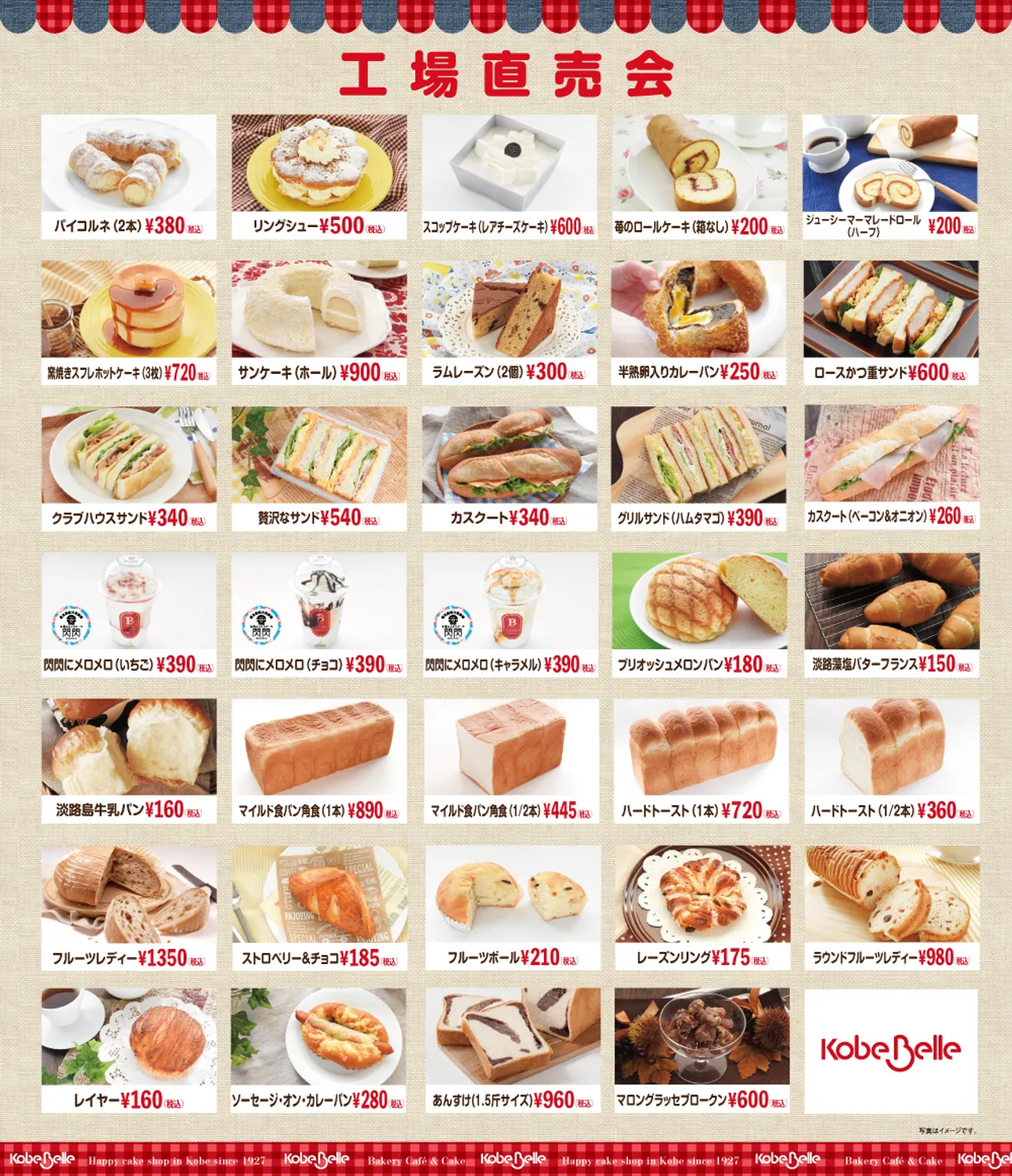 - ※画像は、神戸ベル 工場直売会 ご予約サイトよりよりお借りしています。