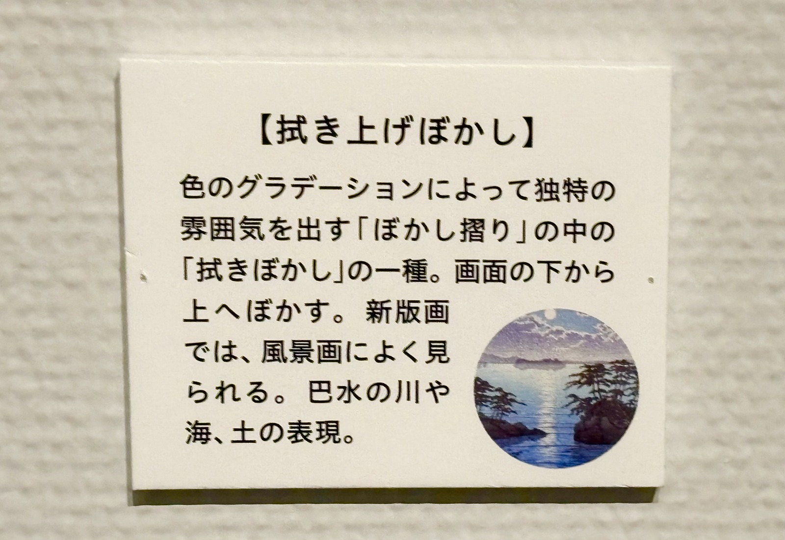 館内では作品の展示とともに、表現の技法や見どころなども紹介されており、ぜひ間近で色の出し方やぼかし方をじっくりとご覧いただけたらと思います。
