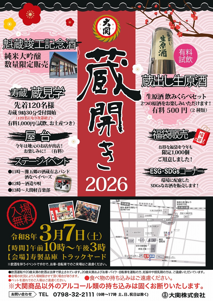画像と情報の引用参照:大関 WEBサイト「「大関蔵開き2026」ご案内」