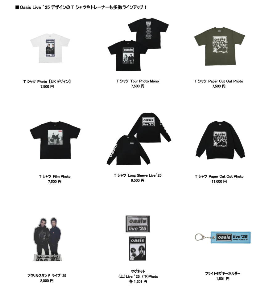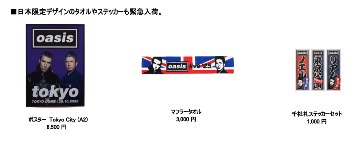 「Oasis Live’25 日本公式ツアーグッズ」販売イベント第2弾の概要がこちら