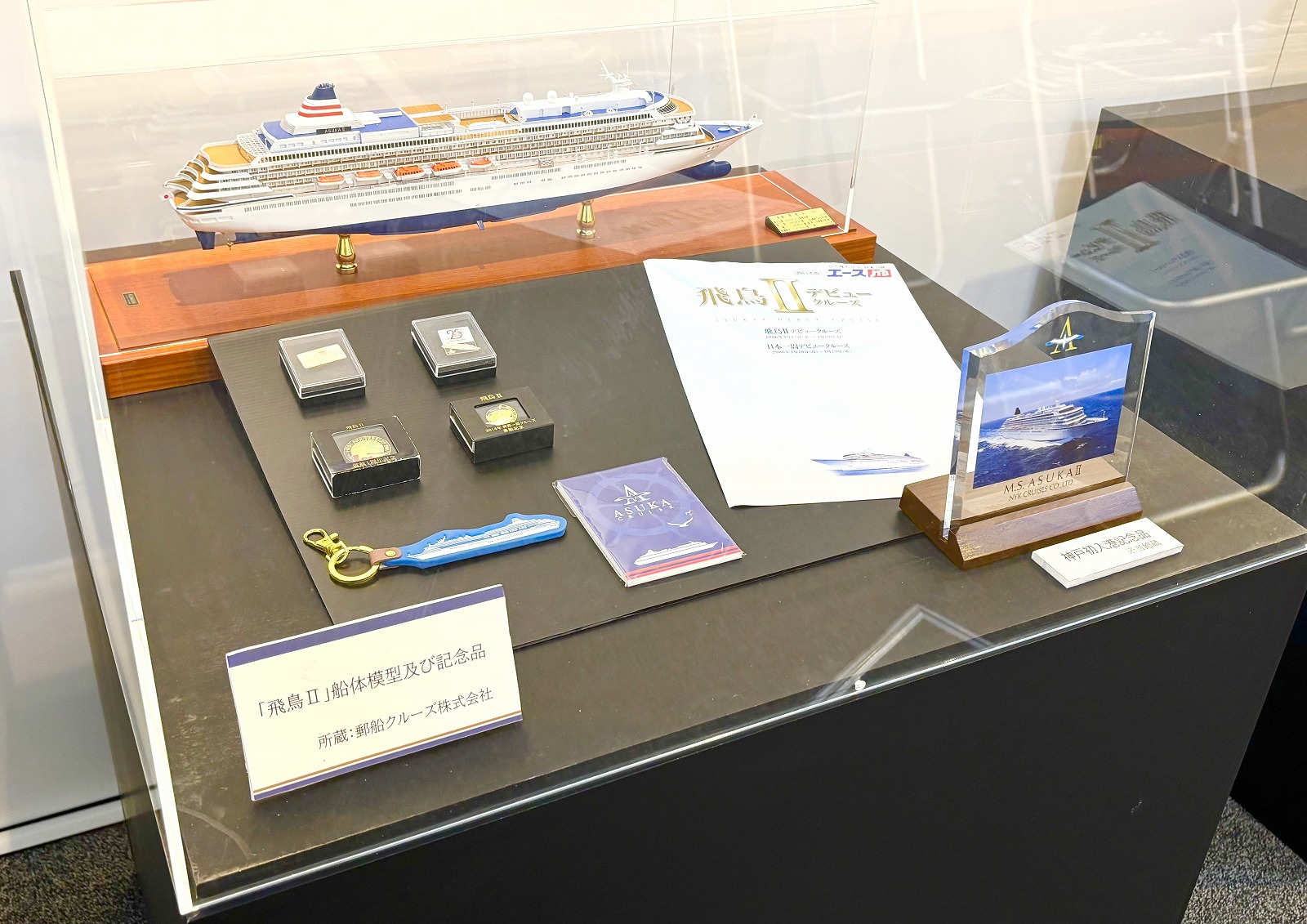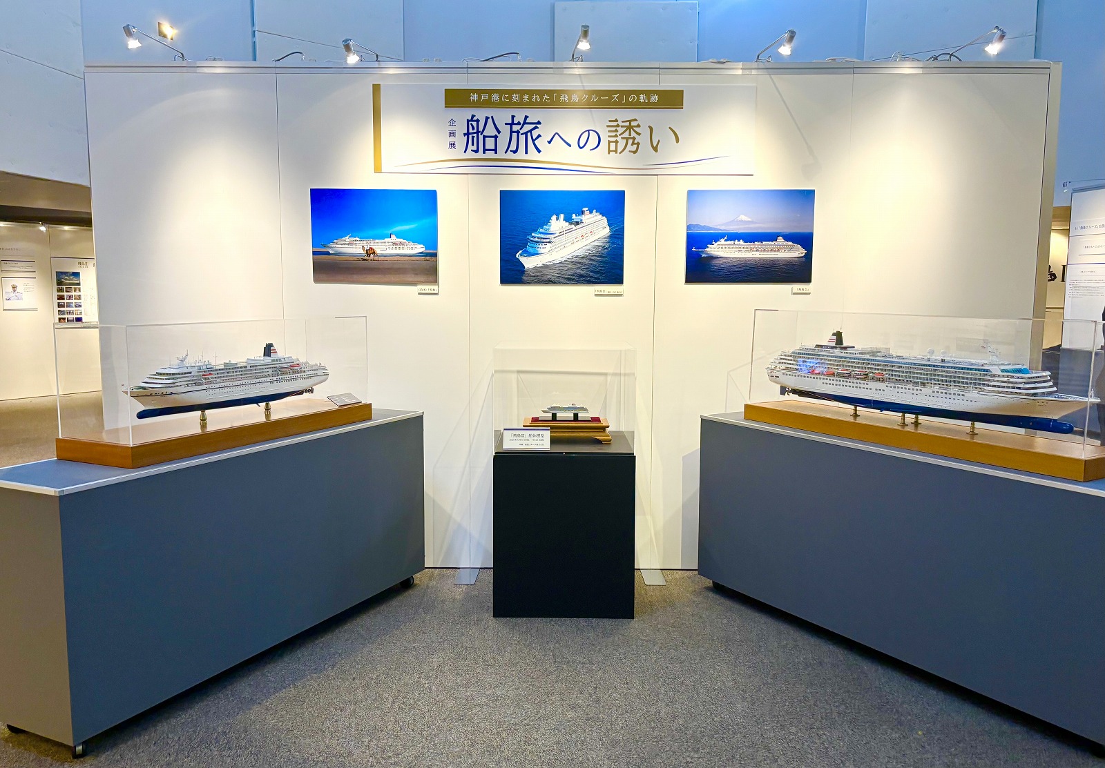 神戸海洋博物館では今回「飛鳥」をテーマに、至福のクルーズを支えるしくみや神戸港にちなんだ船旅の歴史などがご紹介されています。