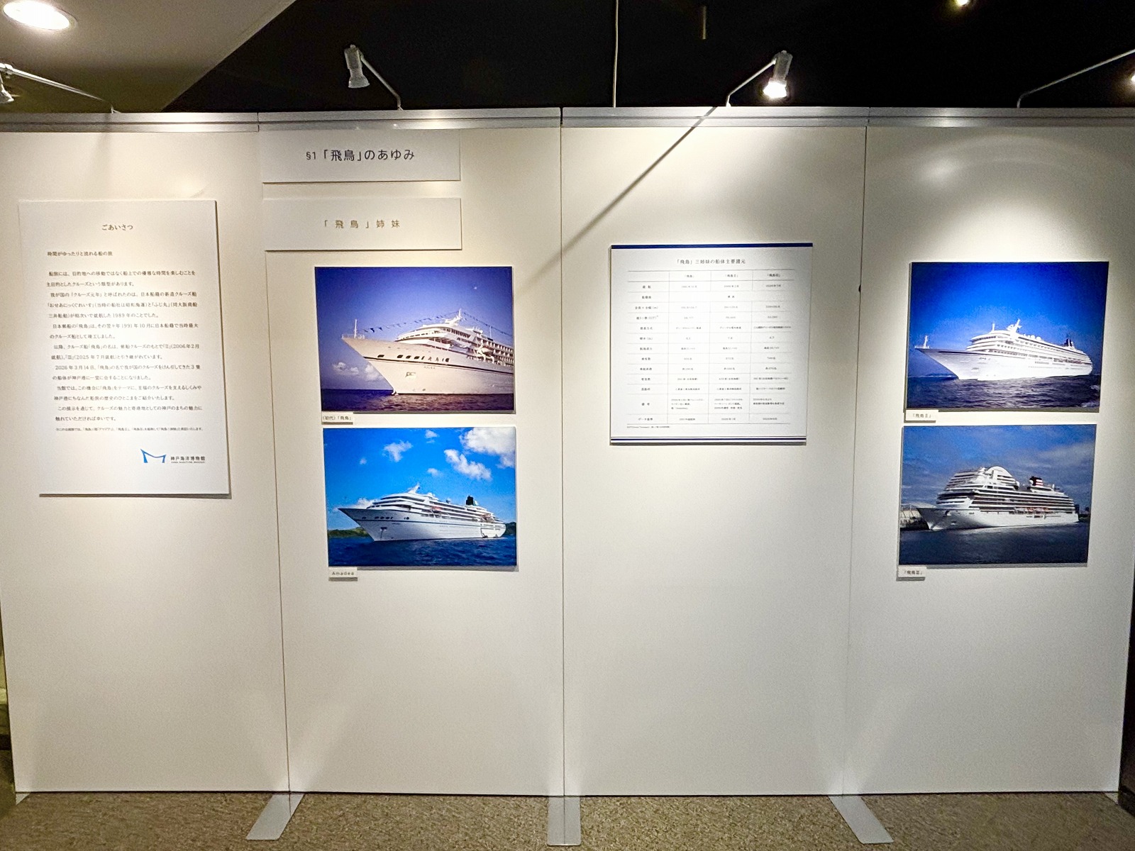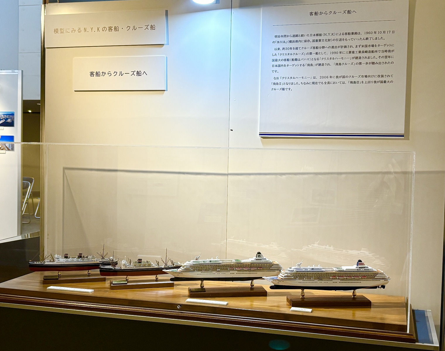 [第1章]飛鳥のあゆみ のコーナーでは、飛鳥姉妹 ・飛鳥クルーズの軌跡が描かれており、