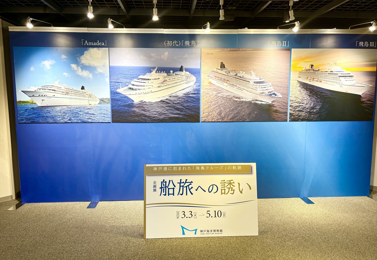 企画展「船旅への誘い― 神戸港に刻まれた「飛鳥クルーズ」の軌跡―」が2026年3月3日(火)~5月10日(日)の期間で開催されており、今回は内覧会に参加させて頂きました。(※写真は許可を得て撮影しております)