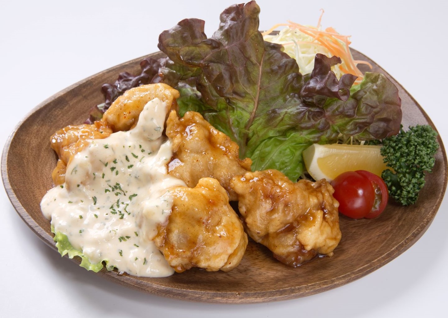 宮崎県発祥で知られる「チキン南蛮」。外はカリっと、中はジューシーなチキンに、お店特製の南蛮タレ・タルタルソースを絡ませて食べる人気メニューです。