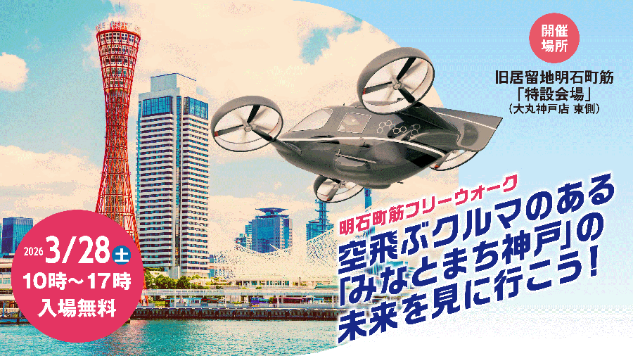 神戸明石町筋フリーウォーク 空飛ぶクルマのある「みなとまち神戸」の未来を見に行こう! 体験型イベントが3月28日(土)に開催されます。