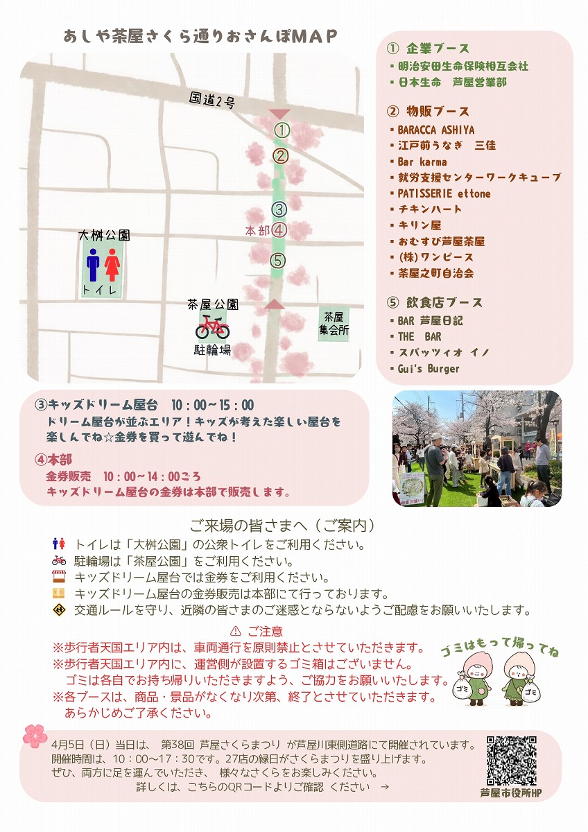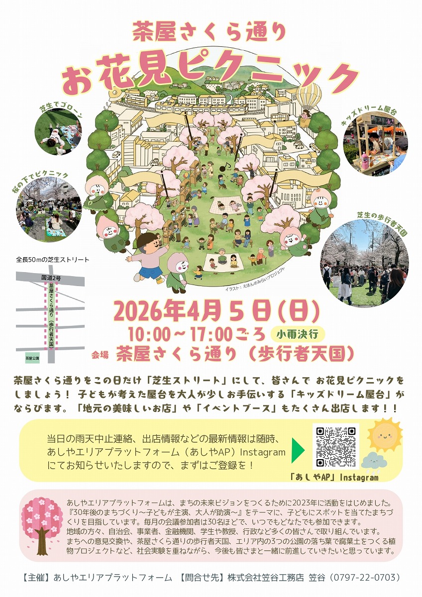 画像と情報の引用参照:芦屋市広報サイト「令和8年4月5日(日曜日)開催「茶屋さくら通り お花見ピクニック!」」