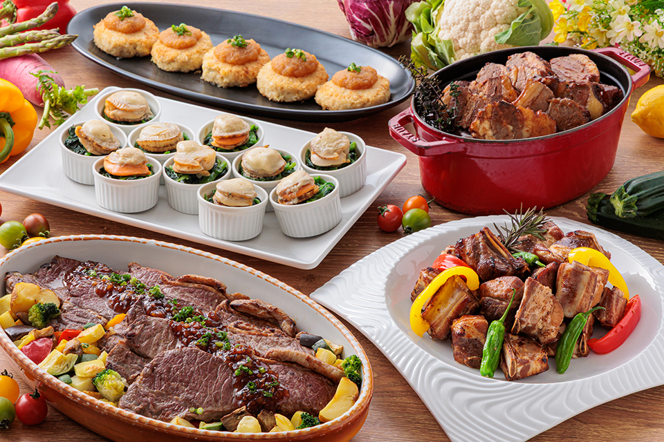 トリコで提供してきたお料理の中から、シェフが特に自信をもってお届けできるメイン料理“ベスト5”と、ブッフェコーナーのスープ・サラダなどのサイドメニューとドリンクバーを90分間食べ放題でご提供します!